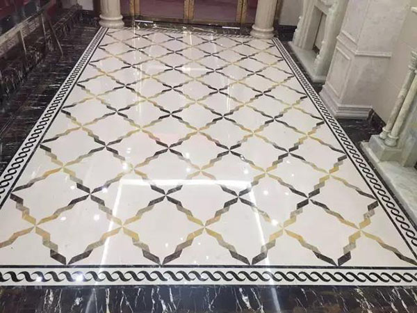 水刀拼花在现实装修中较常见,美观使用,主要在地砖中加以水刀拼花装饰,显得更加富丽堂皇。水刀拼花还不限制于瓷砖加工,大部分拼花厂品更是脑洞大开,有瓷砖与玻璃之间的组合,有瓷砖与金属组合。